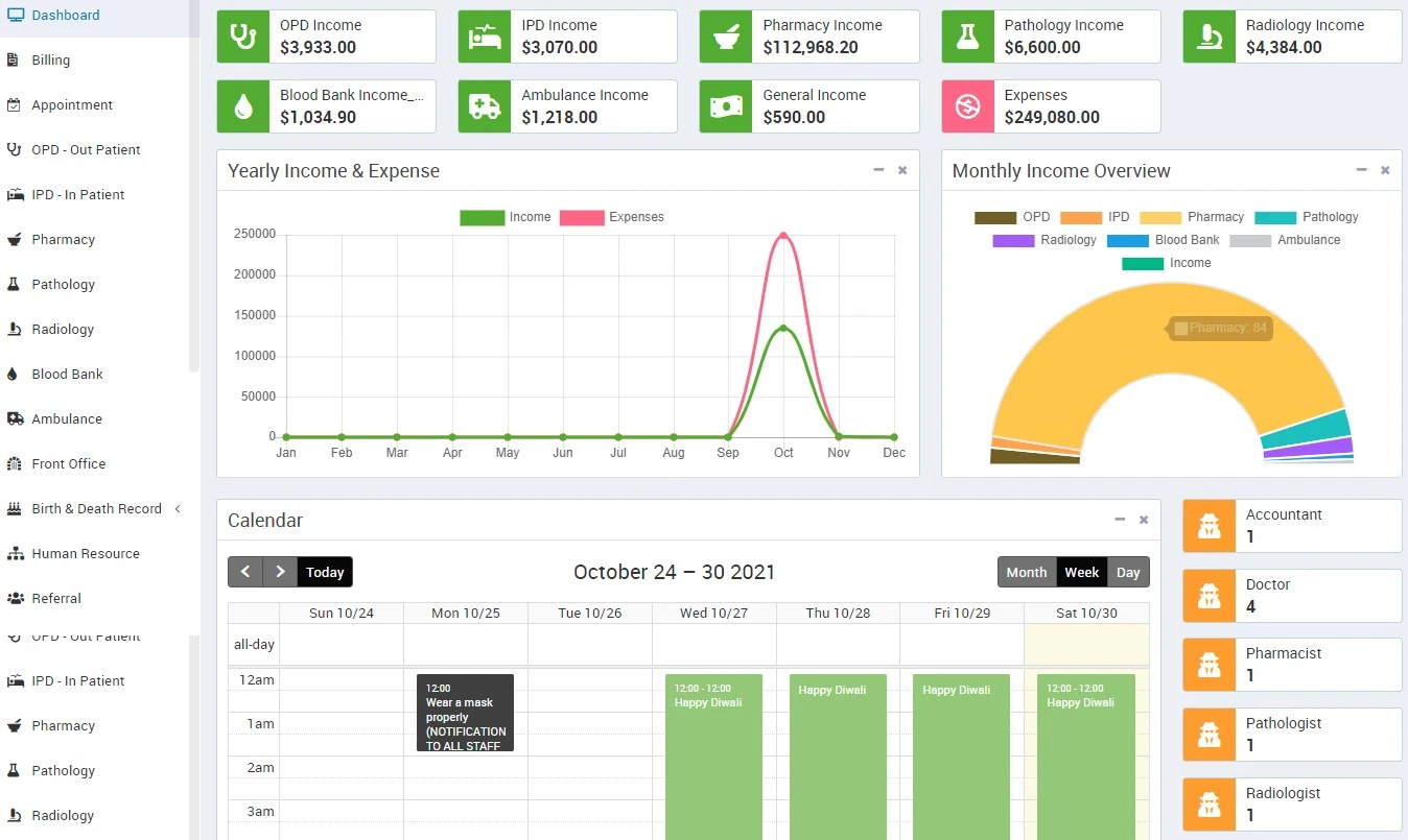 A Hospital Management System software is a digital solution that manages patient records, appointments, billing, pharmacy, labs, staff, and reports in one platform.